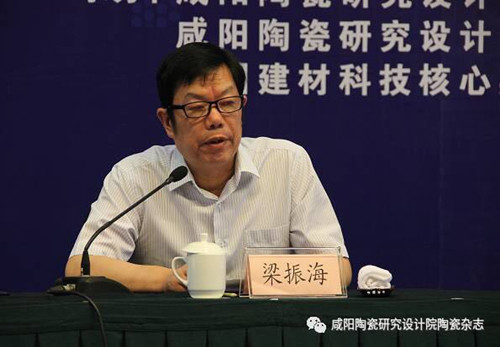 咸陽陶瓷研究設計院院長梁振海致辭,他對與會領導、委員、代表等到會表示熱烈的歡迎,梁院長還簡要的介紹了咸陽陶瓷研究設計院的情況,表示作為秘書處掛靠單位,咸陽陶瓷研究設計院會一如既往支持標委會的工作。