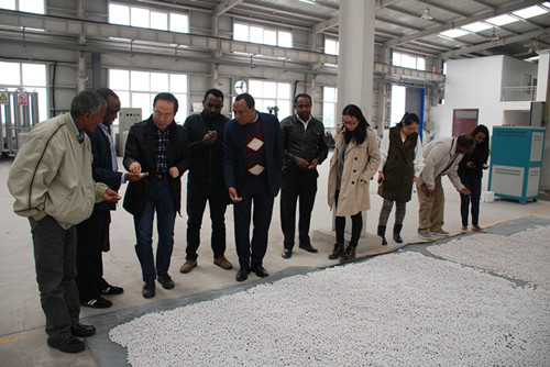 Dr. Alemu Sime一行還參觀考察了院機械廠、窯具廠,詳細了解產品創新、生產、銷售情況,通過現場觀摩對我的科研成果轉化和產業發展情況表現出極大的興趣,為以后雙方合作打下良好的基礎。