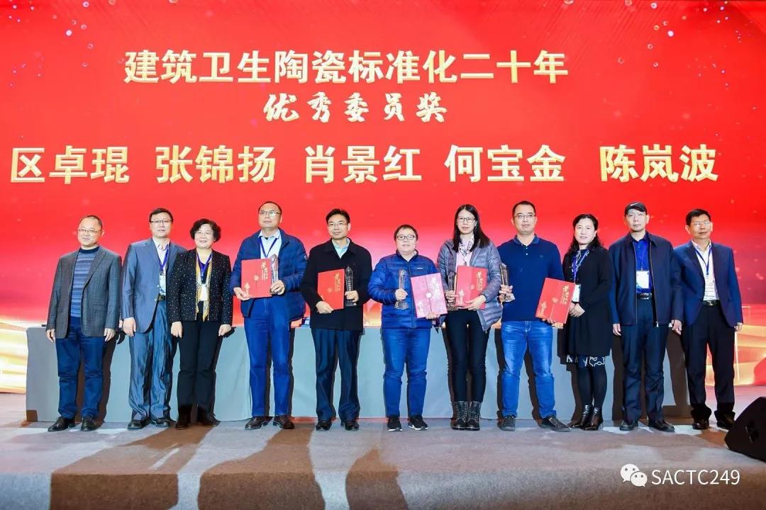 會上還對全國建筑衛生陶瓷標準化技術委員會二十年先進人物進行了表彰,授予:尹虹、繆斌、王巍建筑衛生陶瓷標準化工作二十年功勛人物獎;張旗康、宋子春、李瑩、盧廣堅、李列林、麥卓榮、嚴邦平建筑衛生陶瓷標準化工作二十年卓越成就獎;區卓琨、張錦揚、肖景紅、何寶金、陳嵐波建筑衛生陶瓷標準化工作二十年優秀委員獎;聞萬梁、文興芳、黃錦、楊雪定、楊君之建筑衛生陶瓷標準化工作二十年優秀觀察員獎。