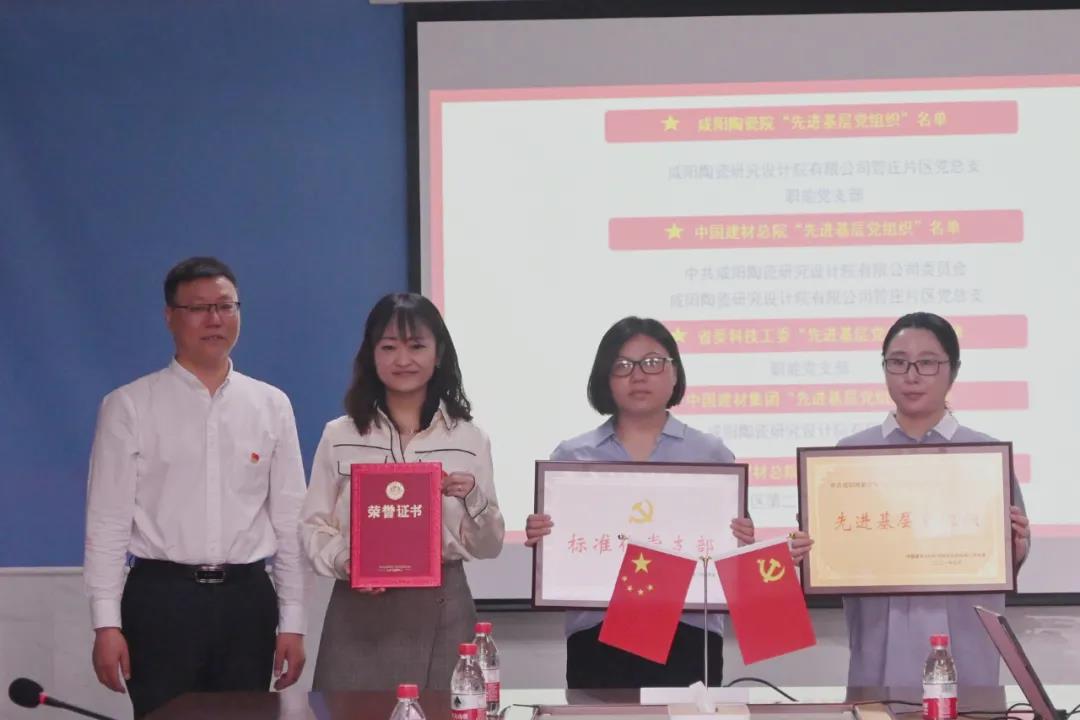 院領(lǐng)導(dǎo)班子為1名中國建材集團“優(yōu)秀共產(chǎn)黨員”、4名中國建材總院“優(yōu)秀共產(chǎn)黨員”、1名省委科技工委“優(yōu)秀共產(chǎn)黨員”、10名咸陽陶瓷院“優(yōu)秀共產(chǎn)黨員”;2名中國建材總院“優(yōu)秀黨務(wù)工作者”、1名省委科技工委“優(yōu)秀黨務(wù)工作者”、3名咸陽陶瓷院“優(yōu)秀黨務(wù)工作者”;1個中國建材集團“先進基層黨組織”、2個中國建材總院“先進基層黨組織”、2個中國建材總院“標(biāo)準(zhǔn)化黨支部”、1個省委科技工委“先進基層黨組織”、2個咸陽陶瓷院“先進基層黨組織”進行頒獎。隨后,2021年度 中國建材總院“優(yōu)秀共產(chǎn)黨員”代表任瑞康、石萍、張蕊作交流發(fā)言。