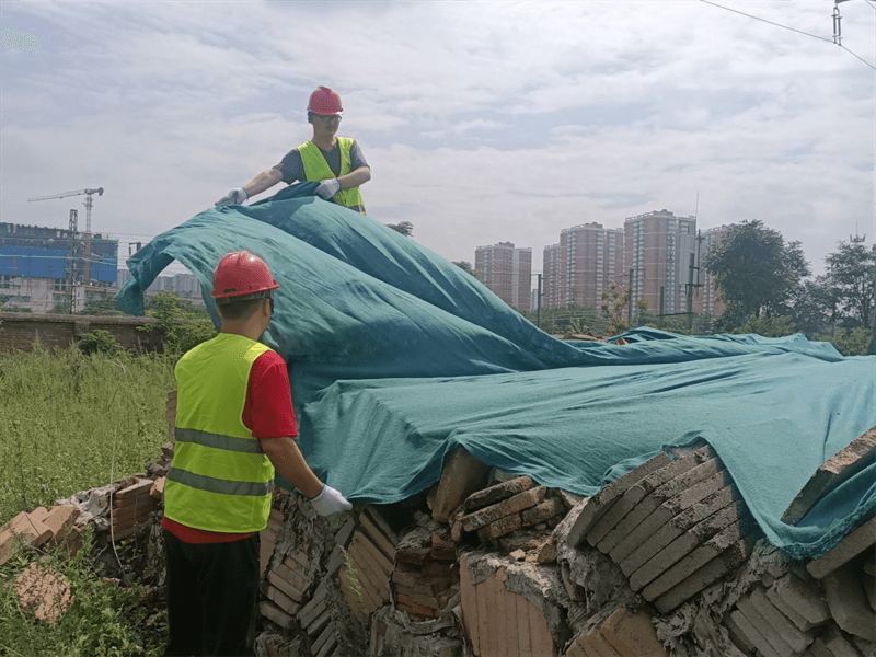 對園區南空地上存放的保溫磚表面進行防塵防雨覆蓋,以免造成環境污染。